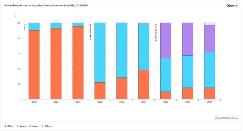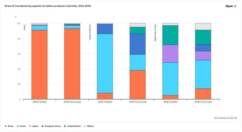IEA指出,尽管中国目前在电池市场占据主导地位,但其他市场的电池生产也在快速推进。