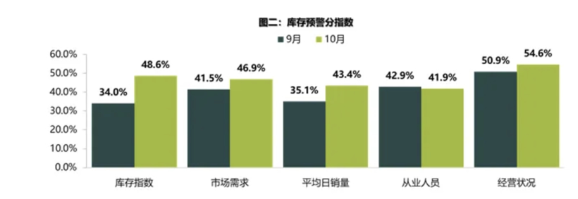 从中国汽车流通协会公布的具体指数情况看,与9月相比,10月市场需求、平均日销量、经营状况等指数均出现回升,但从业人员指数下降,人员流失风险加大。