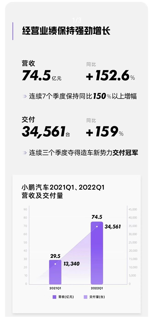 不过,在何小鹏看来,“公司Q1业绩为2022年强势开局。市场对我们高质量的产品需求强劲,我们的自研技术也继续领先行业。优秀的自研技术开发能力以及积极主动的供应链管理,使我们可以更高效地应对供应链方面的挑战。尽管受到半导体短缺和疫情的影响,我们仍有信心扩大市场份额。”