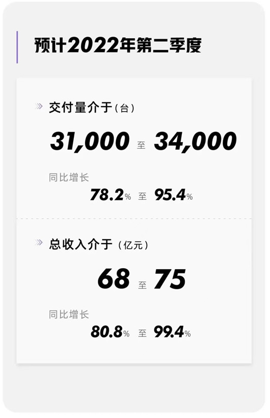 对于正在进行中Q2,小鹏官方预期交付量将达到31,000-34000辆,同比增长约78.2%-95.4%;总收入达到68-75亿元,同比增长约80.8%-99.4%。