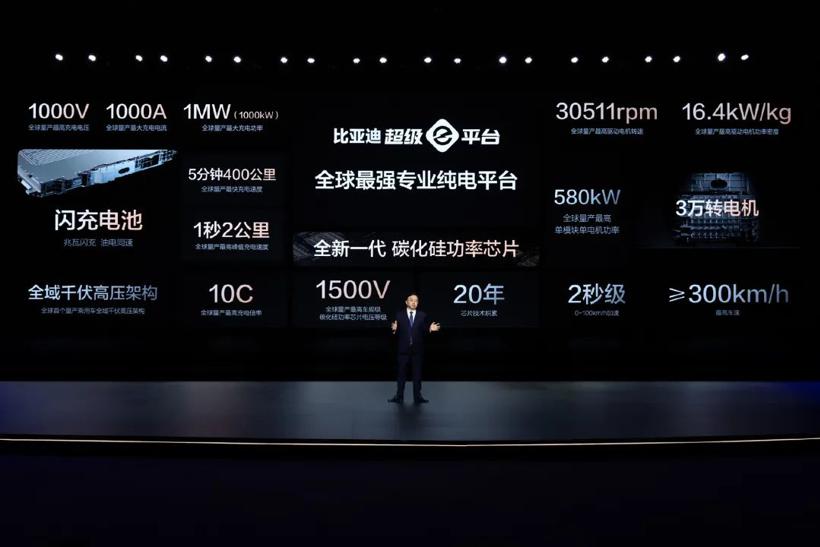比亚迪兆瓦闪充的核心在于,超级e平台是全球首个量产的乘用车“全域千伏高压架构”。