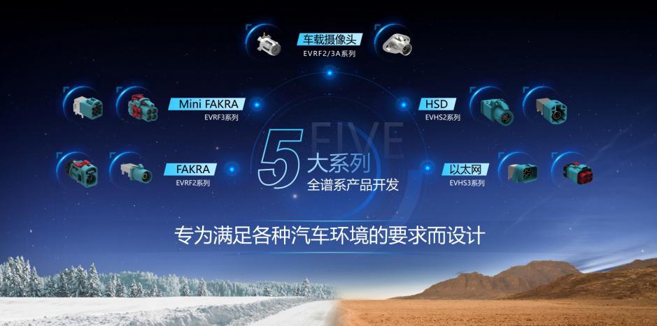 经过多年深耕,2023年11月,中航光电在广州车展发布了首套自主研发的新能源汽车智能网联系列产品,涵盖Fakra、Mini-Fakra、HSD、车载摄像头、以太网五大系列全谱系产品,集中展示了其在车载高速、射频等全系列连接器及线束组件产品的研发实力。