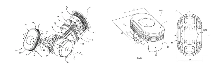 该申请中指出,典型的圆柱形活塞形状存在“一些缺点”,受传统设计的限制而无法解决,因此需要一些更激进的方法。本质上来说,法拉利所做的相当于将标准发动机纵向挤压(如同挤压啤酒罐),比如纵向缩小5.0升V8发动机缸体,结果得到又高又细的活塞。当然,法拉利的做法要稍微复杂一些,因为它采用具有适当半径的活塞,而不是真正的“椭圆”形状,但基本思路是一样的。