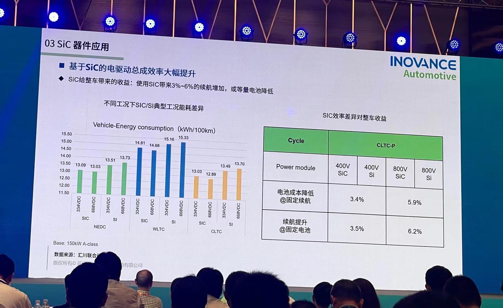 简单说,电池容量相同时,用碳化硅可以延长续航;或者以更小的电池,可以达到相同的续航里程,进而降低系统成本。