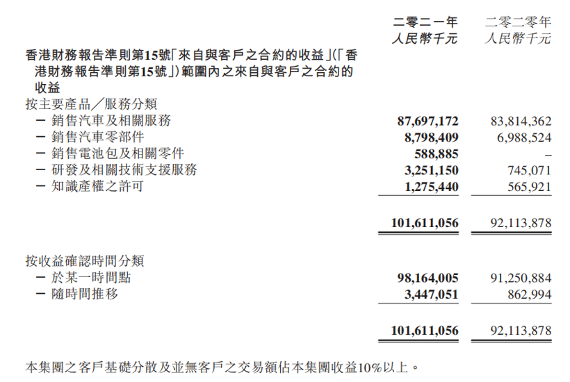 此外,吉利汽车于2021年开拓电池包及相关零件销售业务,过去一年累计营收5.89亿元。