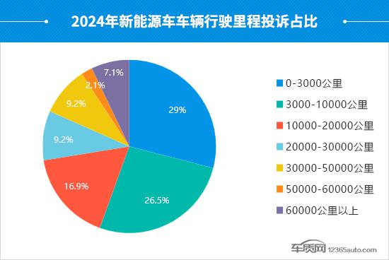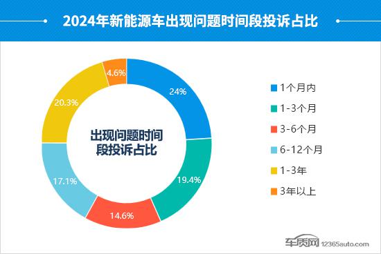 通过新能源车出现问题时间段和车辆行驶里程投诉占比变化来看,2024年新能源车的投诉增长集中在购车3个月和行驶里程10000公里以内的车型,新车阶段出现车主抱怨的几率增大。