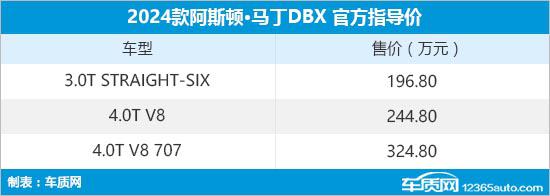 2月2日,阿斯顿·马丁官方宣布旗下2024款DBX正式上市,新车共推出3款车型,其售价区间为196.80-324.80万元。作为年度小改款车型,新车整体变化不大,主要新增了多种车身颜色,以满足更多用户的个性化需求。(配图均为2022款)