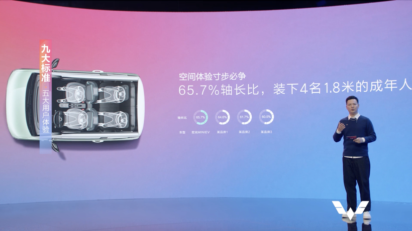 为此,五菱新能源认为一个资源利用率最优的产品,需要在道路资源的占用上非常经济、停车面积非常小、能源特别低,同时可以覆盖用户绝大多数出行场景。